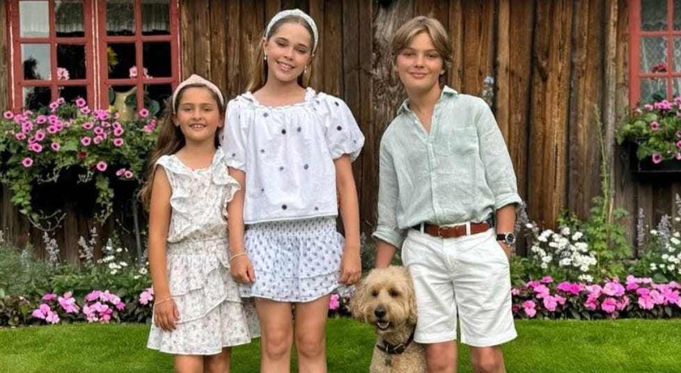 Princess Madeleine of Sweden shared this photo on her Instagram of her three children, plus their dog Teddy.