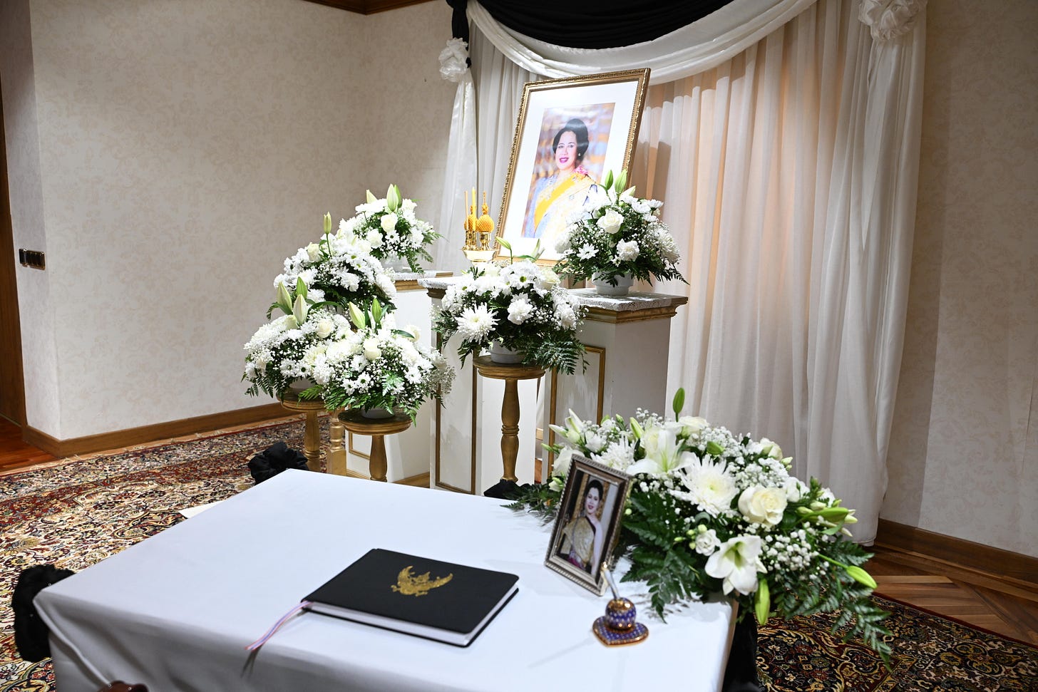 There will be mourning in Thailand for a full year, with flags flying at half mast at all government buildings, schools, and state-owned corporations for 30 days. Members of the population will wear black, white, or sober-hued clothing for up to 90 days. Those in official government roles will wear black for a full year.