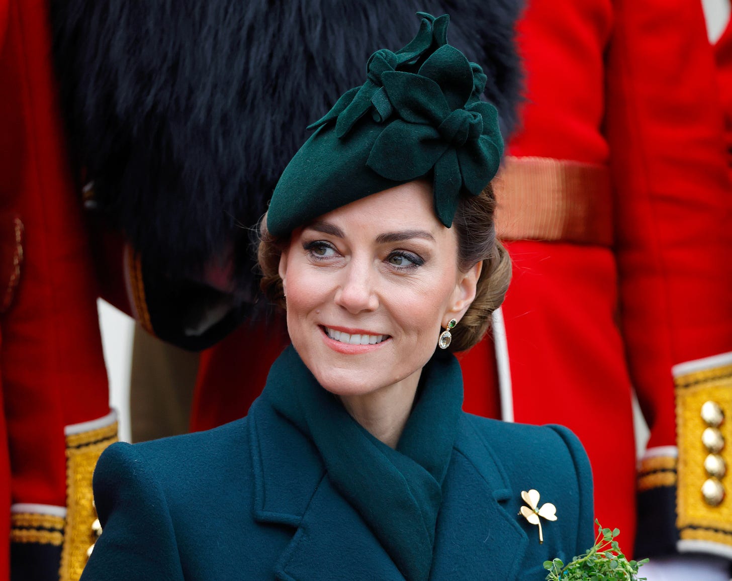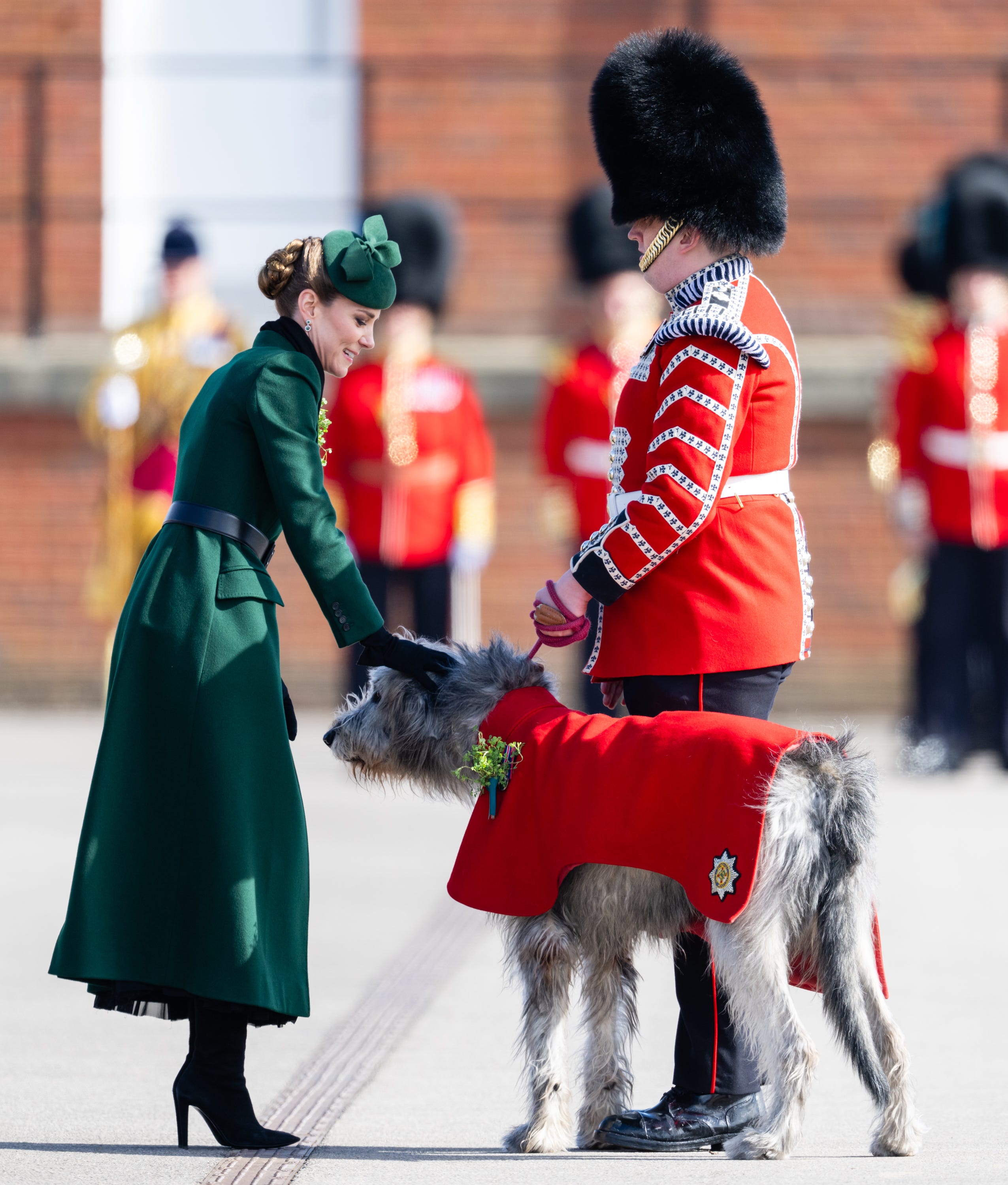 I had to include this photo of the Princess of Wales being reunited with Seamus, the Irish Wolfhound and Regimental mascot, who she has met many times before. The royal was treated to a military parade at the 2026 Irish Guards’ St Patrick’s Day Parade at Mons Barracks. As part of her ceremonial duties, she leant down to present Seamus with a shamrock, how sweet!