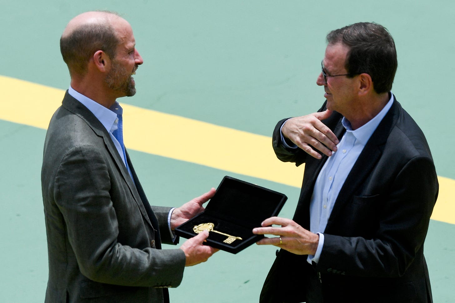 Prince William is pictured here receiving the keys to the city during the “Welcome to Brazil” event at Sugarloaf Mountain in Rio de Janeiro to kick start his three-day trip.