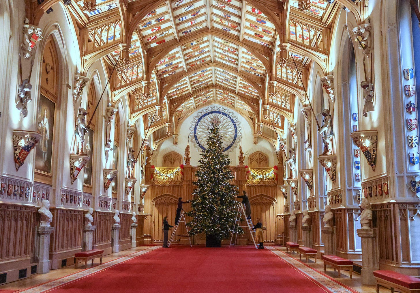 Christmas is in full swing for King Charles at his residence, with his 20ft Christmas tree inside the castle’s largest room, St George’s Hall.