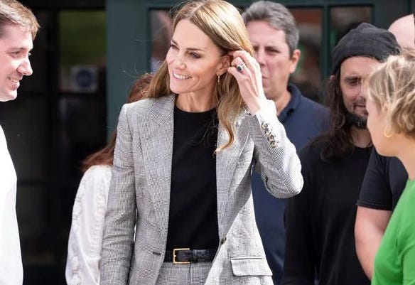 As you will have read, Princess Catherine had an autumnal fashion moment today that I’m sure will spark a frenzy of tweed suit sales