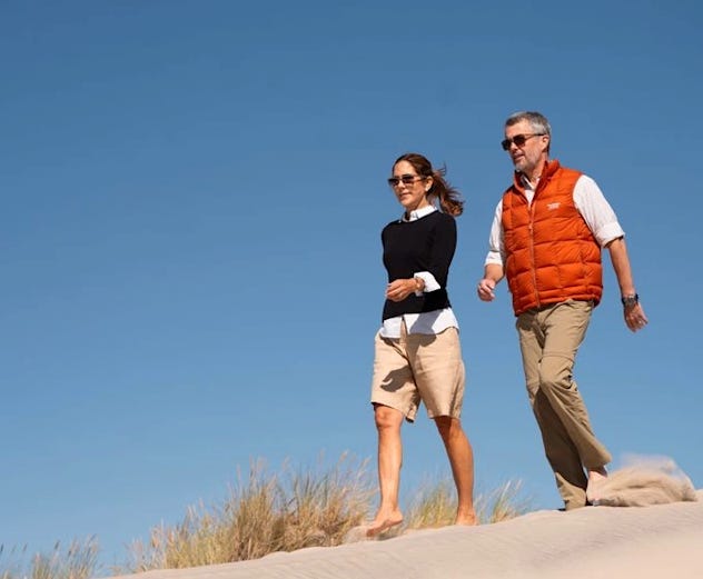 On Monday, Queen Mary and King Frederik walked the coastal dunes of Råbjerg Mile and looked very summery.