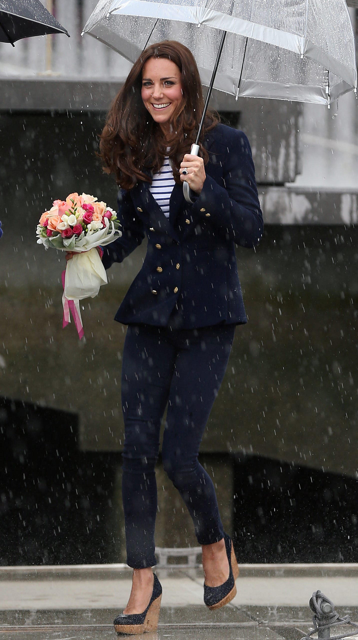 I’m a sucker for a glam jacket, one that can instantly elevate jeans and a T-shirt. I could imagine Catherine wearing this gold jacket, possibly with a pair of toffee-coloured smart wide-leg trousers.