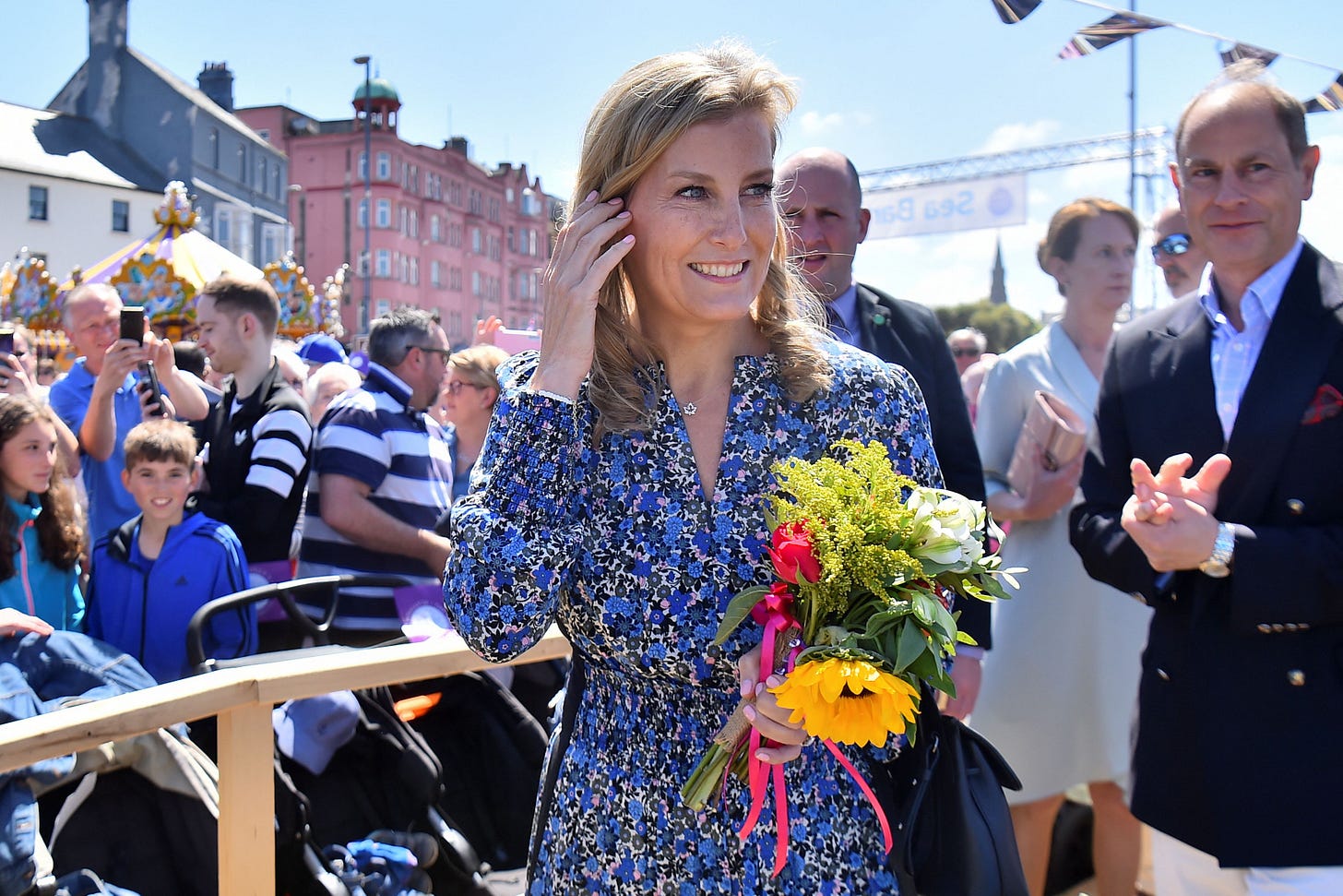The Duchess of Edinburgh is arguably one of the brand’s biggest fans and has worn ME+EM on plenty of occasions. My fave has to be the blue floral midi dress which she wore during a visit to Belfast ahead of the Platinum Jubilee back in 2022.