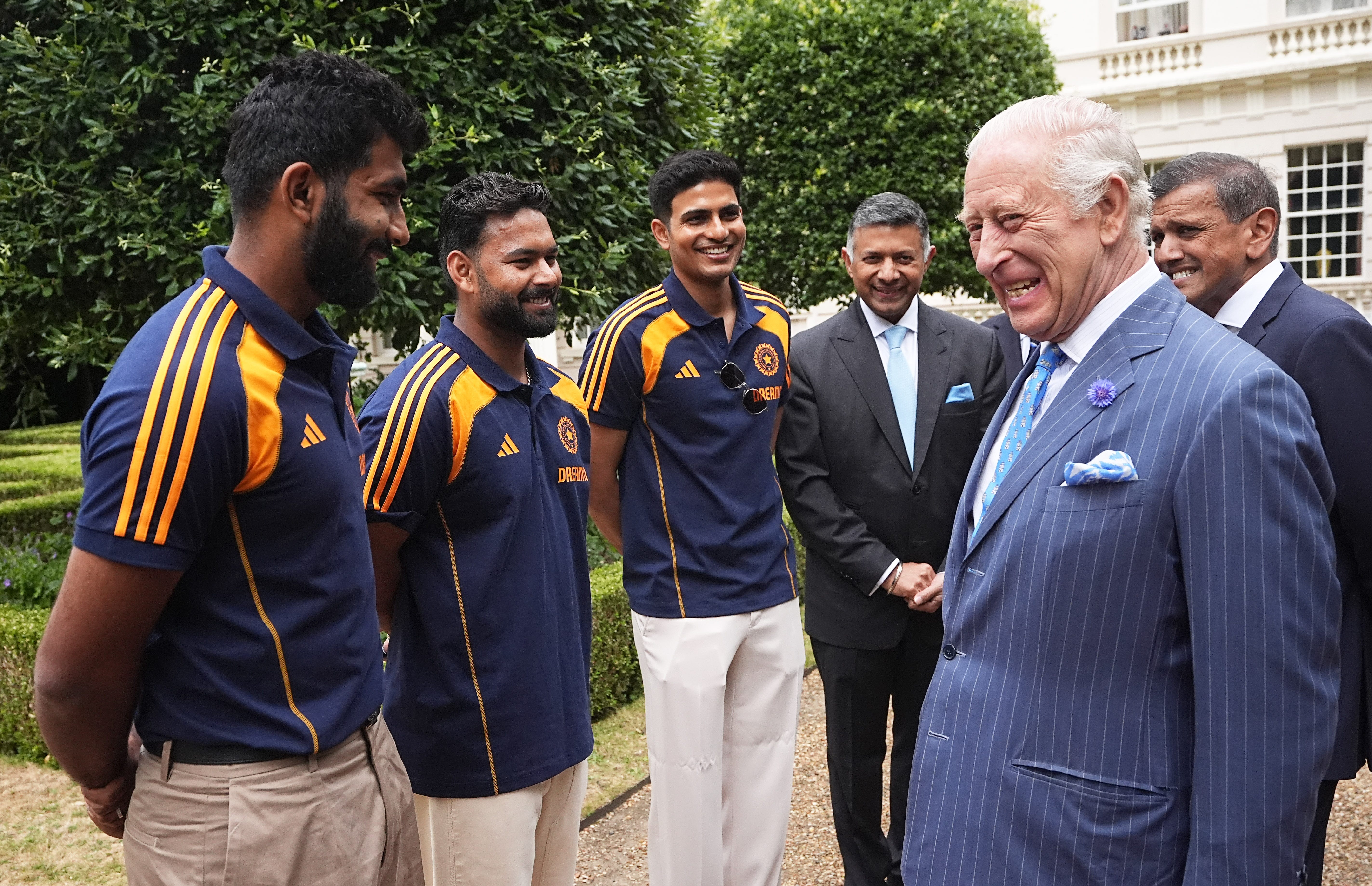 King Charles met members of the India men's Test cricket team, Jasprit Bumrah, Rishabh Pant and Captain Shubman Gill, during an audience in the gardens of Clarence House on Tuesday.