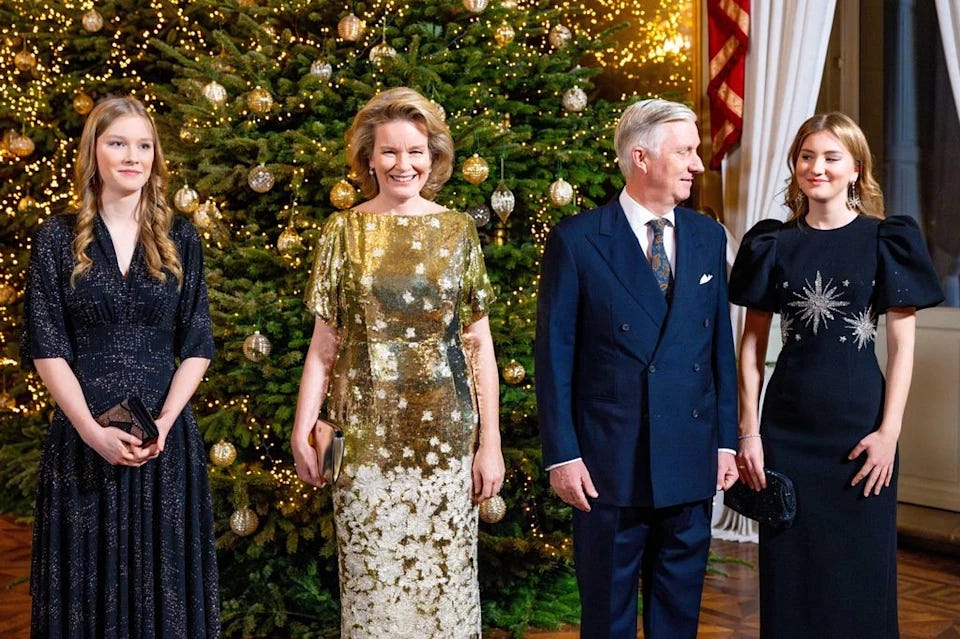 King Philippe and Queen Mathilde of Belgium were joined by two of their four children, Princess Elisabeth and Princess Eléonore, for their yearly Christmas concert at the Royal Palace in Brussels. The family coordinated in glitzy sequins and sparkles.