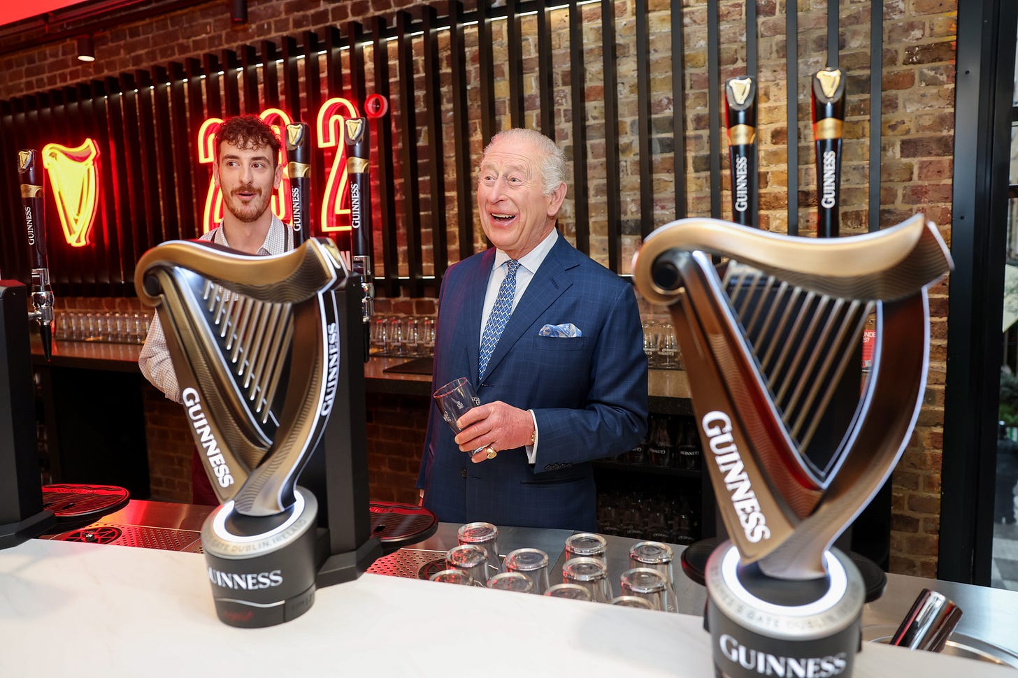 The King pulled a pint of Guinness and sampled his beverage as he opened the Guinness Open Gate Brewery London.