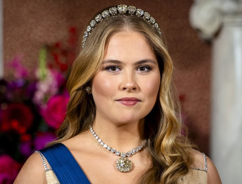 Princess Amalia stole the show wearing the Dutch Diamond Bandeau, one of her mother’s favourite tiaras.