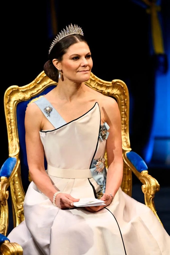 Over in Sweden, the royal family also pulled out all the stops to attend a banquet, the Nobel Prize Banquet 2025 in Stockholm. Crown Princess Victoria once again proved she is the queen of royal re-wears, stunning in a gown designed by Jacques Zehnder, which her mother, Queen Silvia, wore to the same Nobel banquet in 1994.