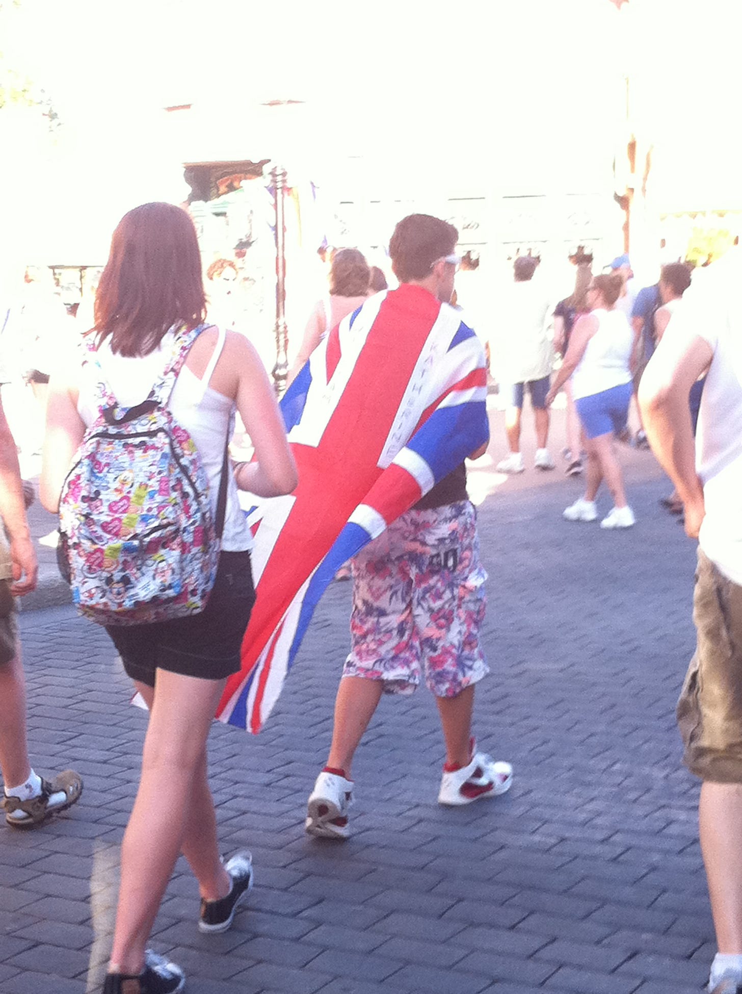 I vividly remember staying up all night, literally all night, to watch the coverage leading up to William and Catherine’s royal wedding in 2011 – not the wisest decision as I left that same day on a family trip to Disney World, where in EPCOT I snapped a photo of a man celebrating the wedding with a Union Jack flag (pictured below).